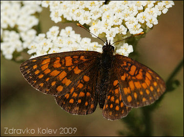 Distribution in Bulgaria: Very poorly known due to confusion with Melitaea aurelia. These two species can be securely distinguished from each other only on the basis of the male genitalia. So far recorded from widely isolated localities in NE, C, E and W Bulgaria at altitudes from sea level up to ca. 800 m. However most of these localities need confirmation because it is not known if they have been based on genital examination. One certain locality is Sliven, also recently found to be widespread in Mt. Strandzha where M. aurelia does not occur.